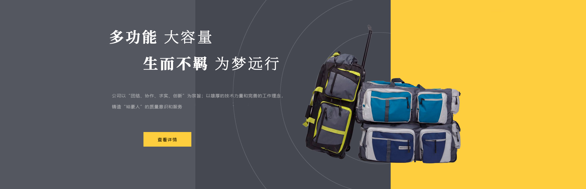 本公司是一家集設(shè)計(jì),制造,加工,貿(mào)易為一體的專業(yè)箱包生產(chǎn)出口企業(yè)。已有20多年箱包生產(chǎn)經(jīng)驗(yàn)。公司廠區(qū)位于中國浙江省海寧市鹽官工業(yè)園區(qū),占地15000平方米,建筑面積10000平方米,員工150人,年生產(chǎn)能力260萬只(套)。 公司以尼龍,滌淪,牛津布,P...